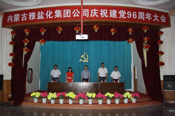62919:30,在庄严的国歌声中集团公司庆祝建党96周年大会在职工文化中心拉开帷幕。会议由党委委员、总经理许新军主持,党委书记、董事长张建国,党委委员、工会主席张菊萍,副总经理徐宪国,总工程师陈兆军出席了会议。全体在职党员和入党积极分子参加大会。