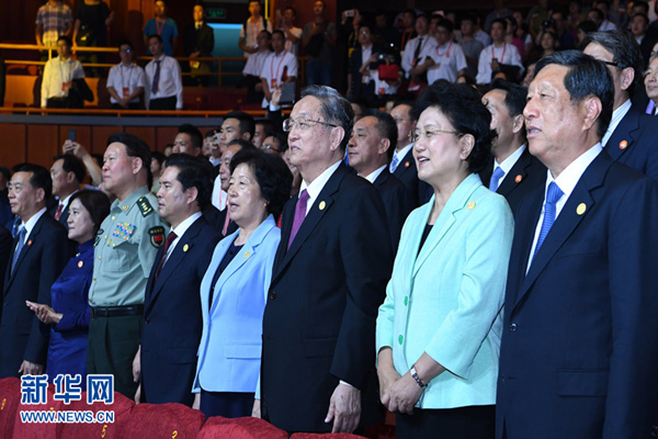 中央代表团副团长刘延东、孙春兰、张平、王正伟、张阳和代表团全体成员一同观看演出。