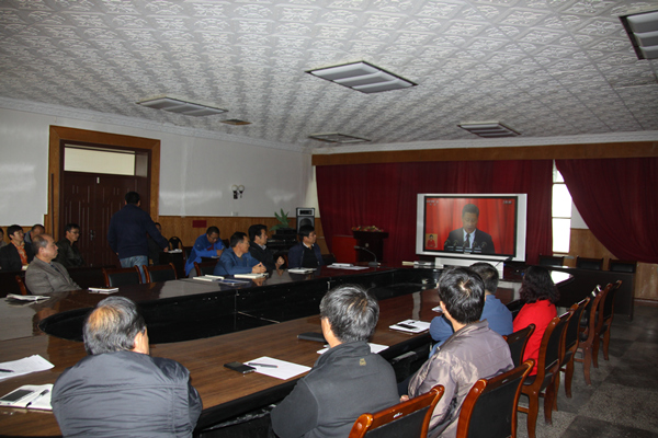 在公司五楼会议室,公司中高层管理人员、班组长、机关工作人员50余人早早守候在电视机前,准时收看十九大开幕式盛况直播。在观看过程中,大家个个精神振奋、豪情满怀,聚精会神聆听习近平总书记所作的题为《不忘初心,牢记使命,高举中国特色社会主义伟大旗帜,决胜全面建成小康社会,夺取新时代中国特色社会主义伟大胜利,为实现中华民族伟大复兴的中国梦不懈奋斗》的报告。不少党员干部边看边快速记录下总书记报告中的重要词句,不时被报告打动着、鼓舞着。