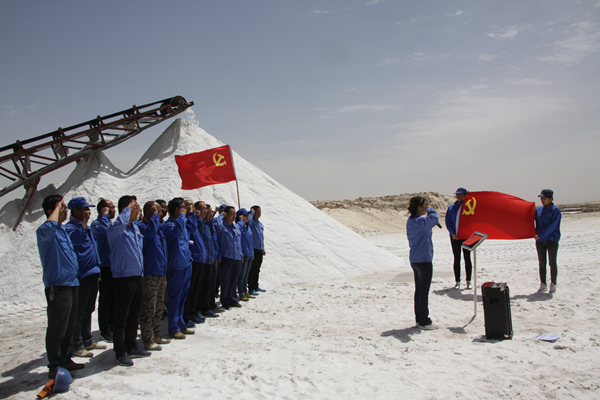 为进一步严肃党内政治生活,扎实推进“两学一做”学习教育常态化制度化,不断加强和改进党员教育管理工作,强化党员意识,引导公司全体党员立足岗位做贡献,激活党支部、党员争当先锋新动力,按照旗委组织部要求,527日,采盐分厂党支部和机关四个党支部联合开展了“我承诺 我践行”主题党日活动,同时共同祝贺采盐分厂2019年生产正式拉开序幕。